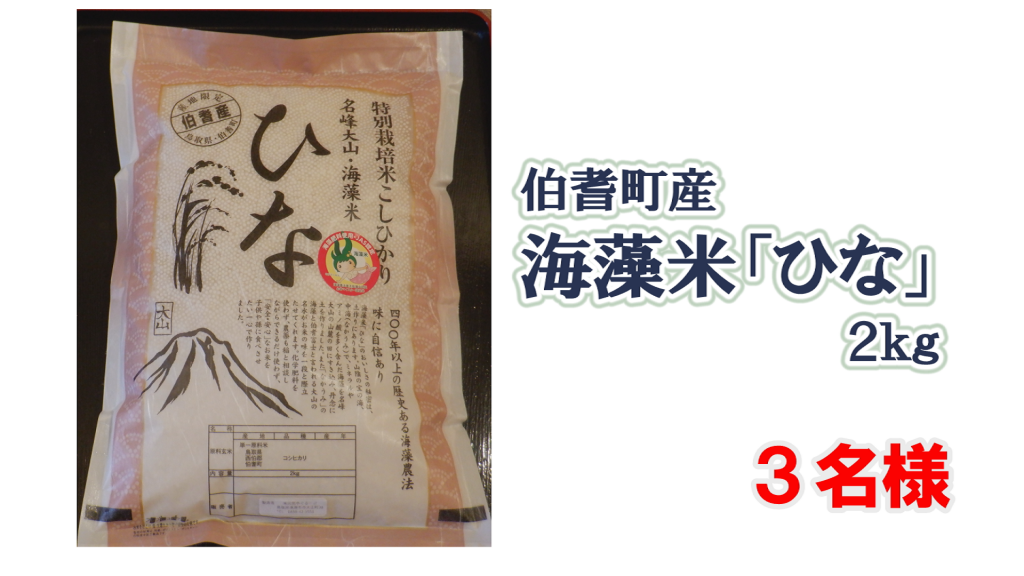 ◆「伯耆町産 海藻米「ひな」 2kg」 3名様