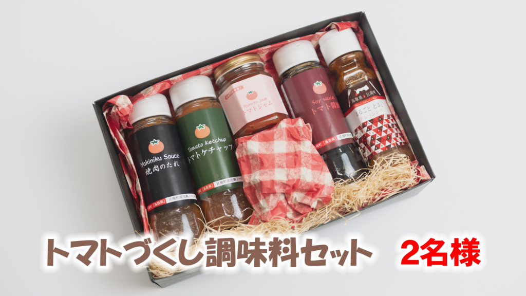 コク深い手作りの焼き肉のたれ、スパイス香る濃厚なトマトケチャップ、優しい甘みのトマトジャム、まろやかな旨味のトマト醤油、バジル香るイタリアン風トマトドレッシングの5種類の調味料が入っています。添加物、保存料、着色料は一切不使用。