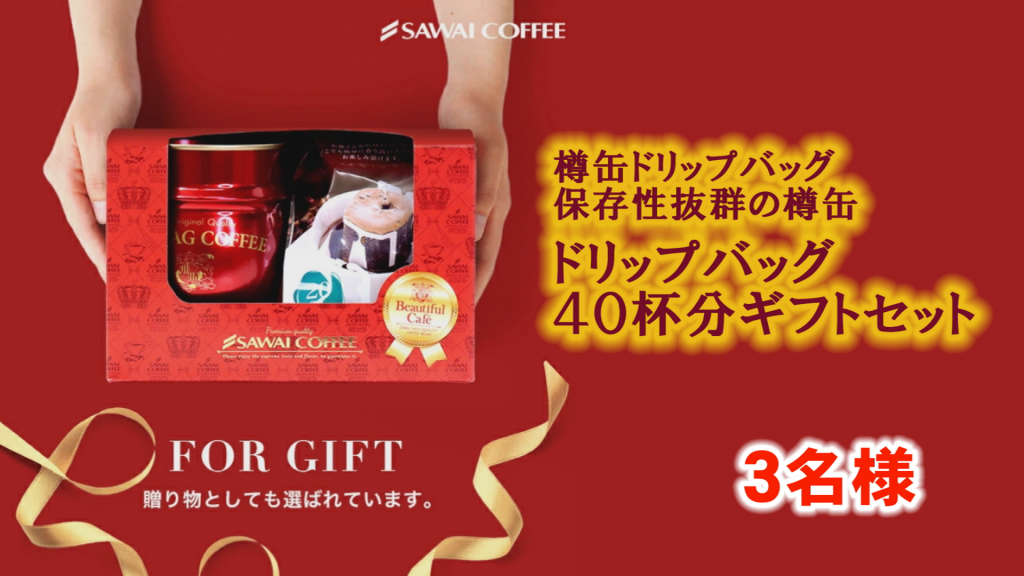 ◆澤井珈琲「樽缶ドリップバッグ 保存性抜群の樽缶 ドリップバッグ40杯分ギフトセット」3名様