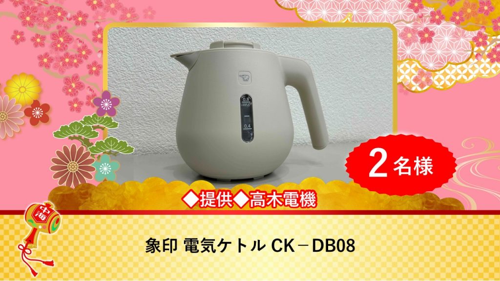 高木電機様からは象印 電気ケトル CK-DC08です。