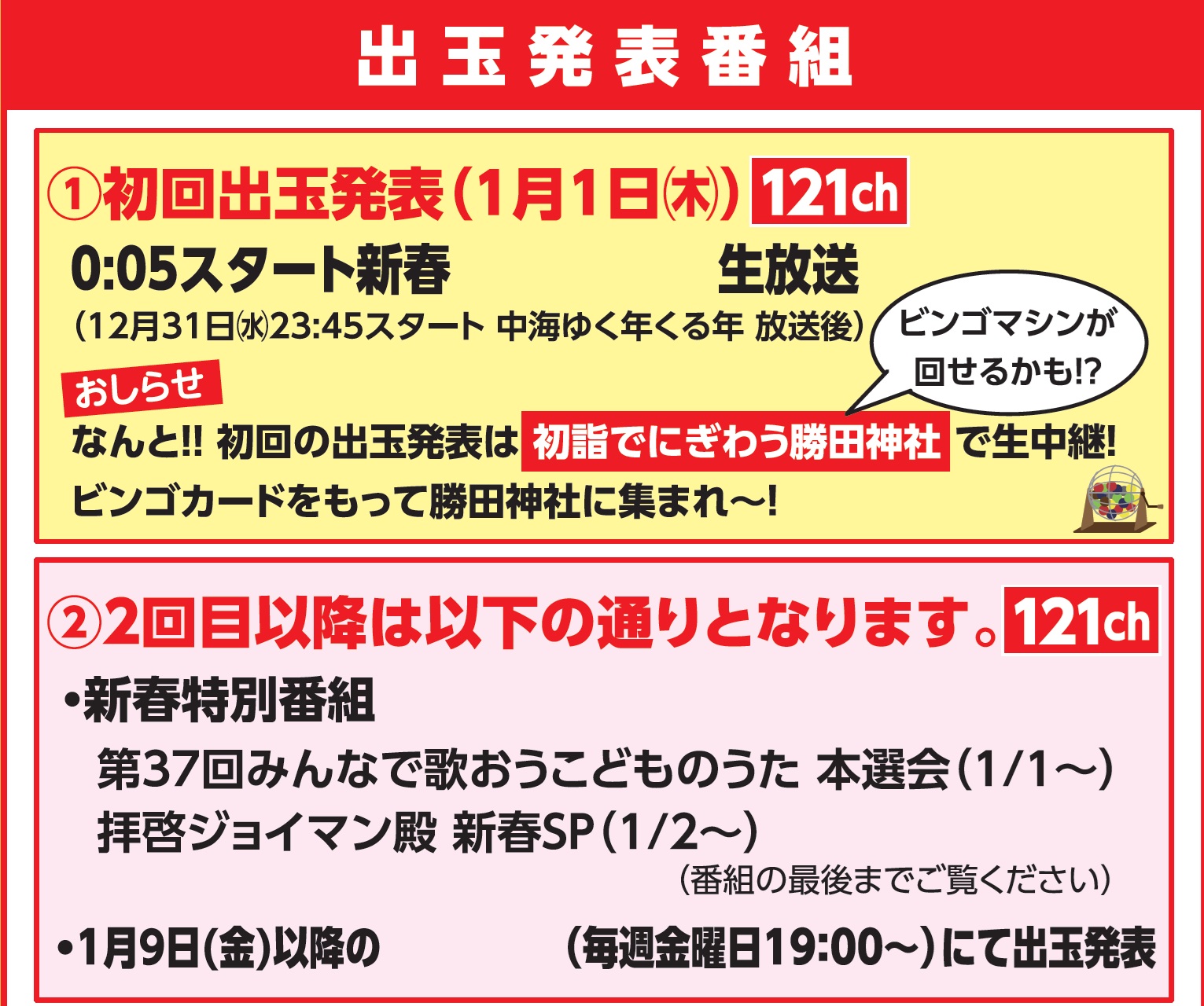 初回のビンゴ出玉は1月1日(木)0:05スタートの
