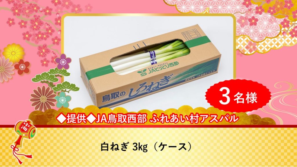 JA鳥取西部 ふれあい村アスパル様からは白ねぎ3㎏(ケース)です。