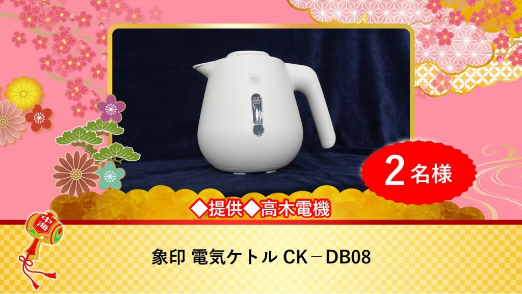 高木電機様からは象印 電気ケトル CK-DC08です。