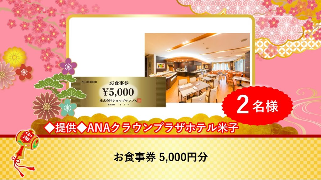 ANAクラウンプラザホテル米子様からはお食事券 5,000円分です。