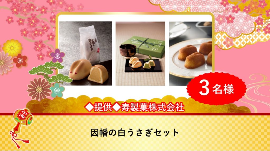 寿製菓人気商品の3品。発売58年を迎えた因幡の白うさぎ。老舗中村茶舗の抹茶を使用した 因幡の白うさぎ(抹茶餡)、大山バターとアーモンドプードルの香りが広がる白ウサギフィナンシェ