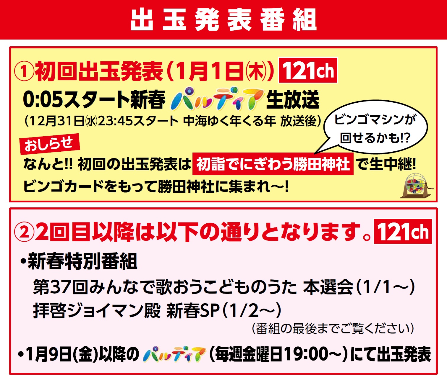 初回のビンゴ出玉は1月1日(木)0:05スタートの