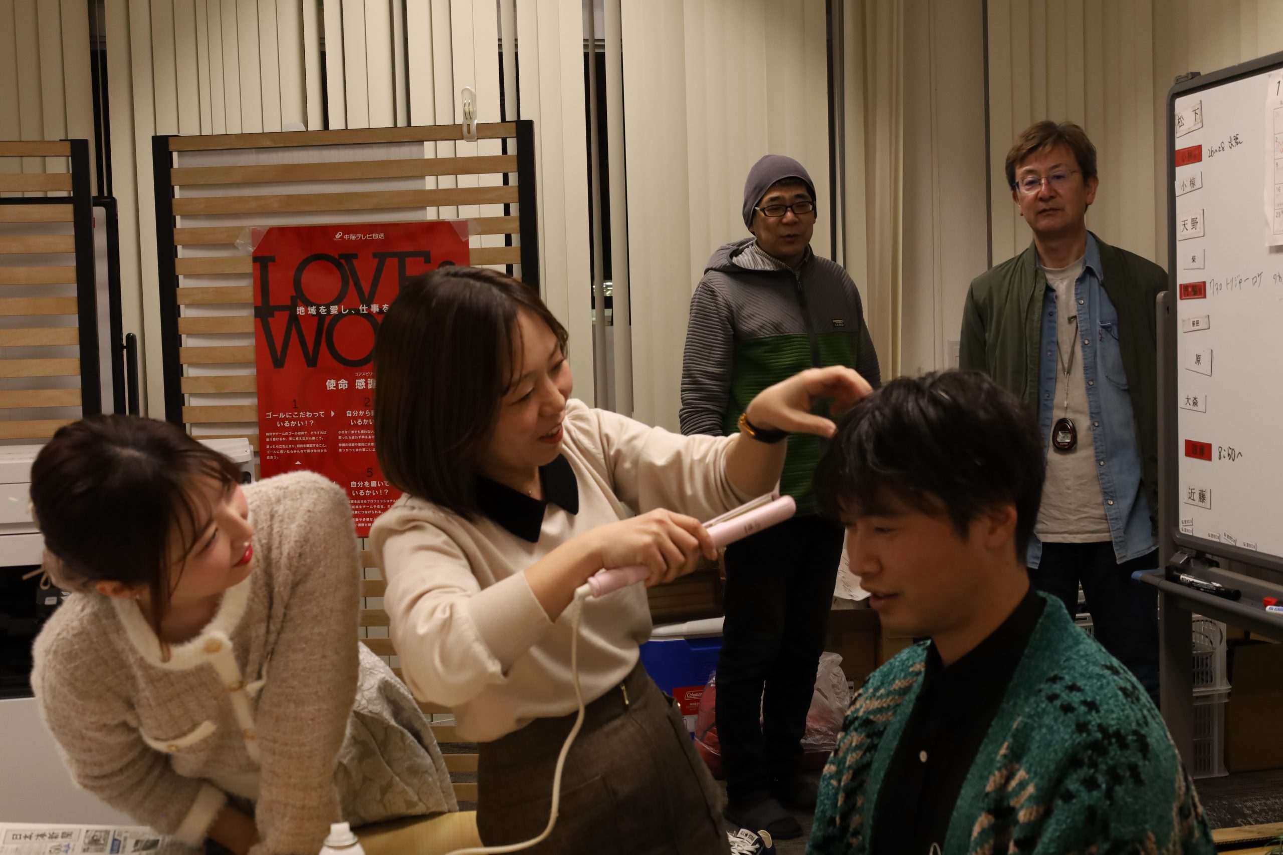 みんなに見守られながらヘアセットを受けられる岡田さんでした。
