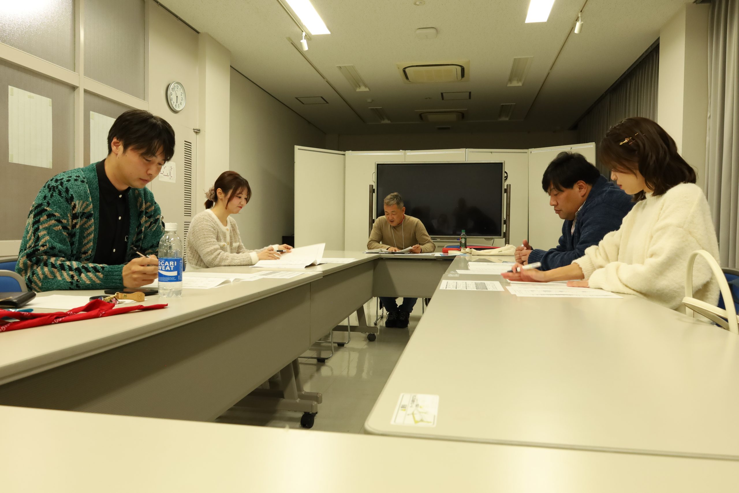 衣装を合わせたりしている間に、空いている方からVTRに合わせた台本読みを行います。