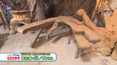 赤猪岩神社の(4年位前に雪で倒れた)ご神木を譲り受け制作した椅子も。