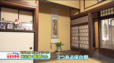 来客をもてなすために作られたとされる3つの床の間は、それぞれ形式が違うのが特徴で、実用性と芸術性を兼ね備えた欄間も見事です。