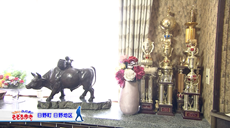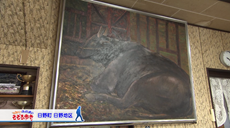牛が描かれた絵や置物、トロフィーの数々など、牛に囲まれていますね。