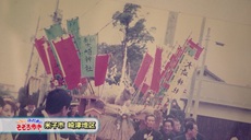 カラフルな旗は、女の子のいる家が、娘の良縁を願ってしめ縄の横に建てて奉納。