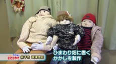 近所の農家さんから頼まれて制作したかかしがひまわり畑と公民館祭で活躍。