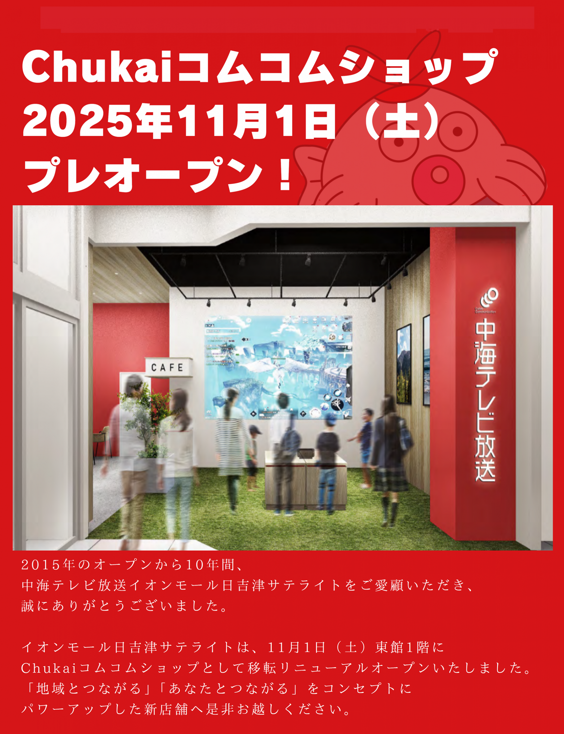 11月1日(土)イオンモール日吉津東館1F(自転車屋売場向かい)に「Chukaiコムコムショップ」がプレオープンします。
