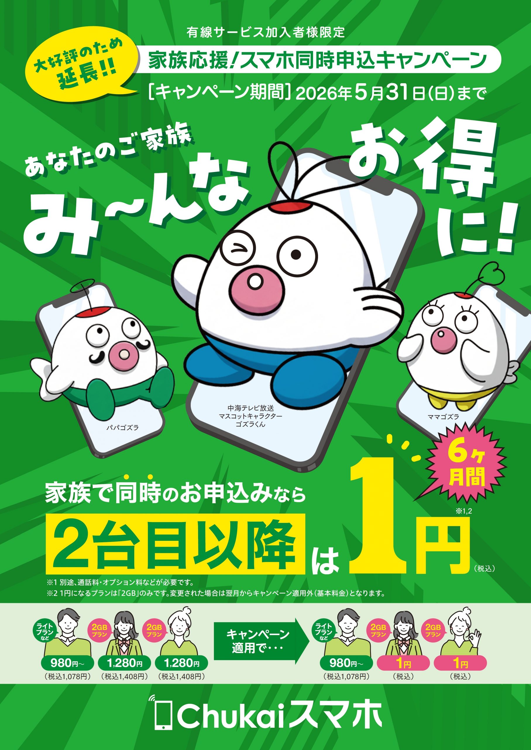 ご好評につき 『家族応援!スマホ同時申込キャンペーン』の実施期間を延長いたしました! 多くのお客様にご利用いただいている、期間限定のお得なキャンペーンです。