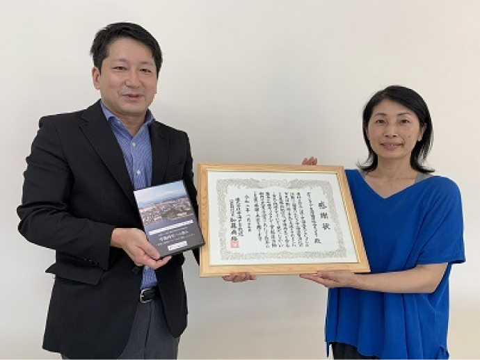 10月8日、中海テレビ放送の加藤 典裕 社長が日吉津村の中田 達彦 村長にWi-Fi設置事業の目録...
