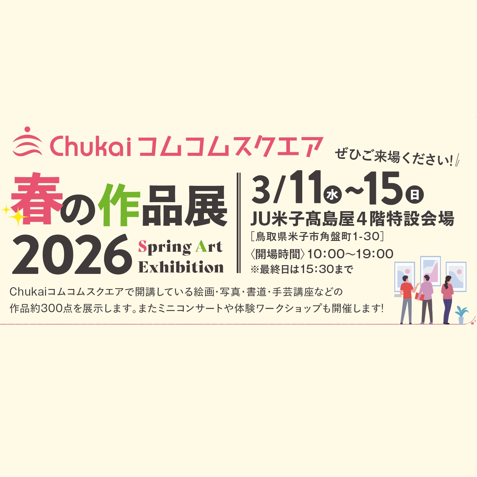 3月11日(水)から、中海テレビ放送が運営するカルチャースクール Chukaiコムコムスクエアの...