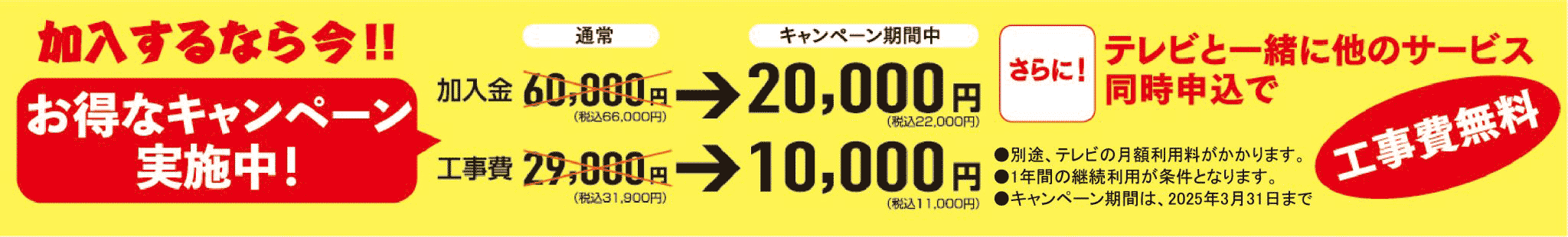 ご利用には加入契約金と工事費が初期費用としてかかります。