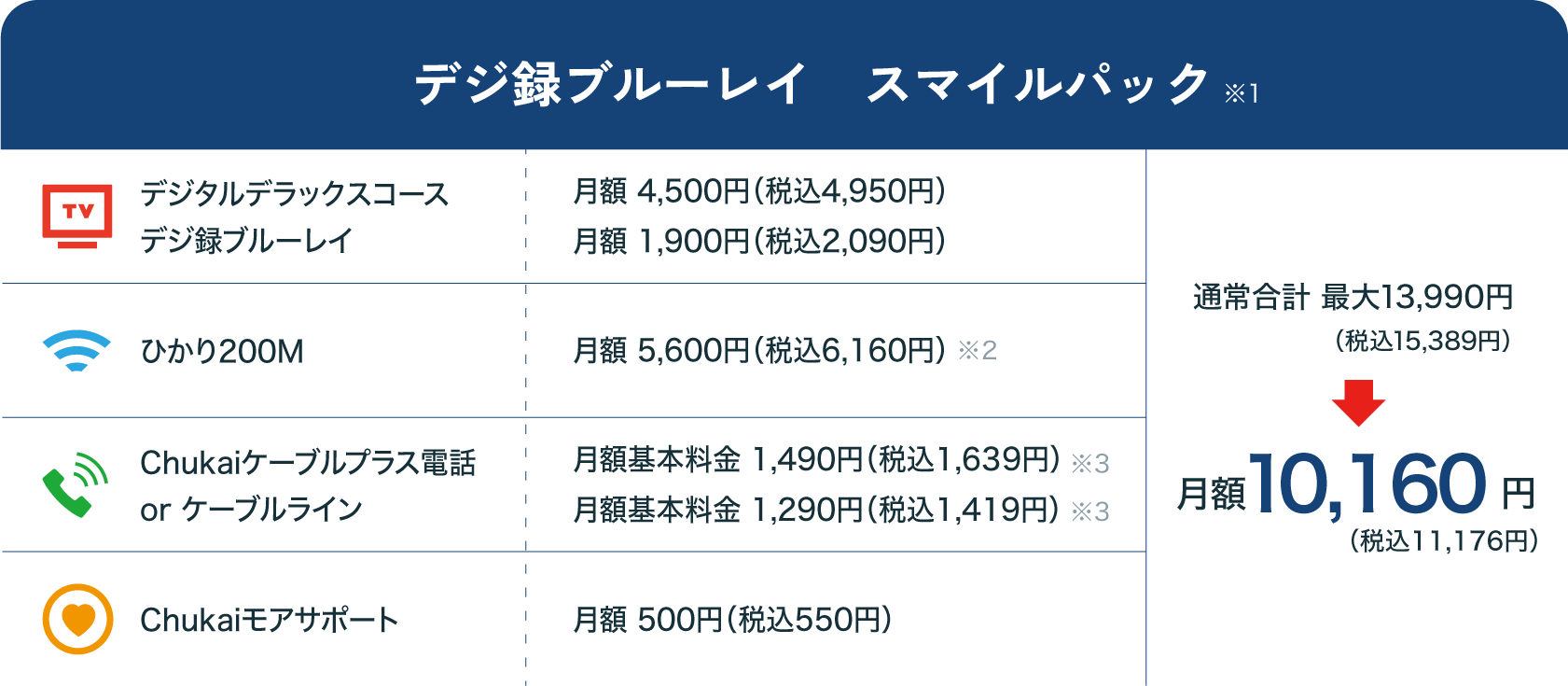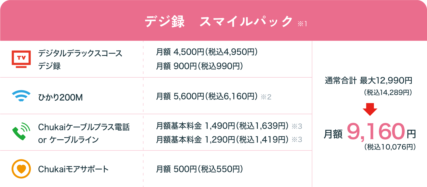 ※2.Chukaiケーブルプラス電話は、別途通話料等が必要となります。