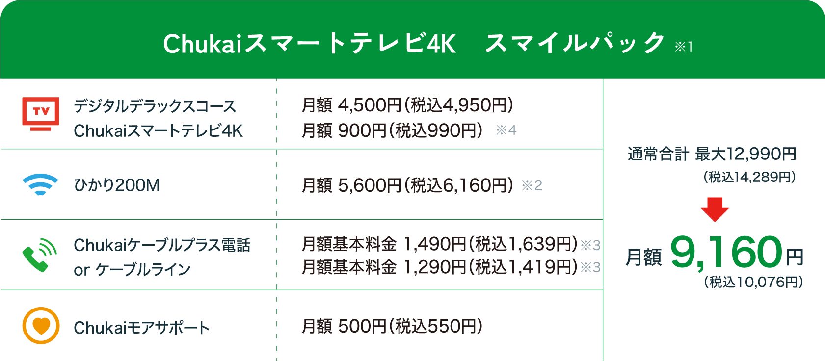 Chukaiモアサポートをはじめ、テレビ・インターネット・固定電話の
